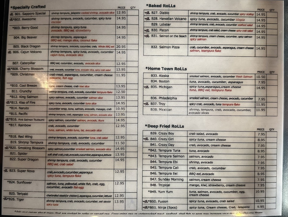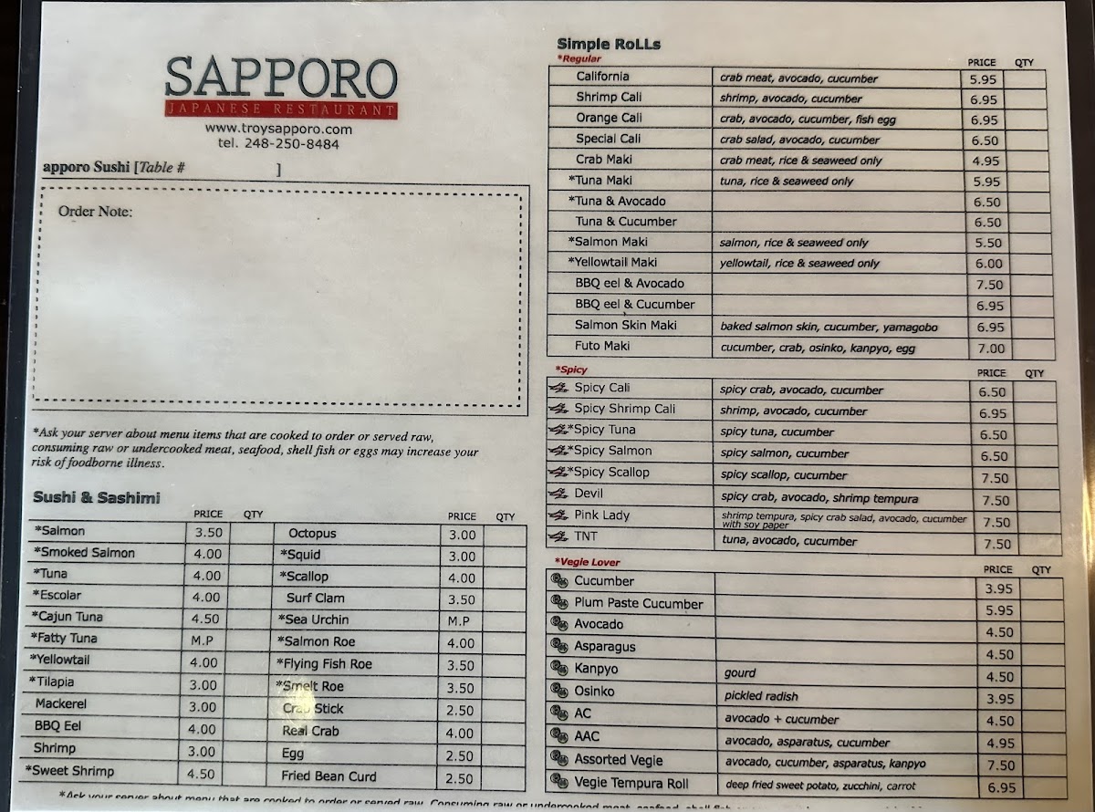 Sapporo Sushi Menu